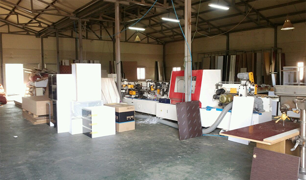 100평의 공장에 각종 기계들과 목재들이 제 역할을 하고 있습니다.